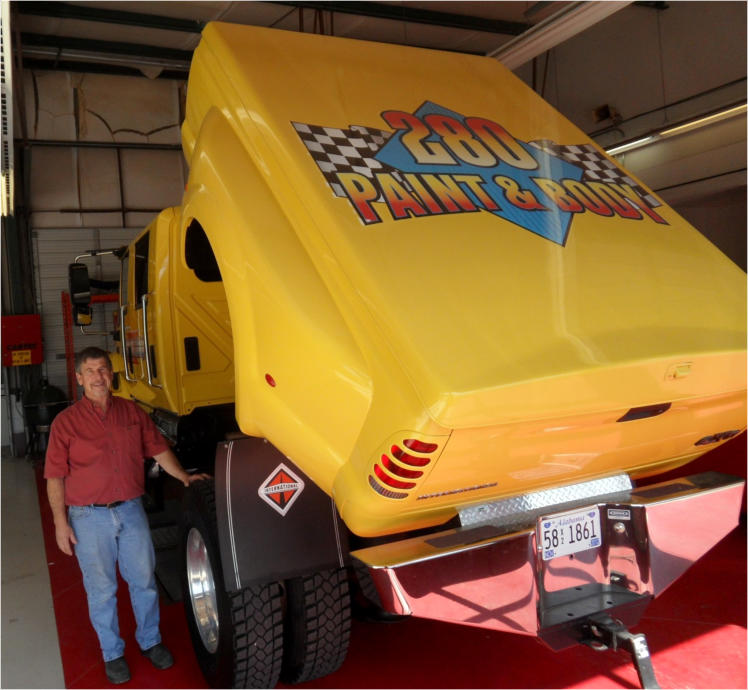 Meet Buddy and TimCome by and say hi to Buddy, Tim’s best friend and soon to become your best friend. And just so you’ll know, Buddy doesn’t take food from strangers so he’ll just have to get to know you first.When you step into 280 Paint and Body, you’ll know that you’re with a group of honest people that treat you with respect, honesty and truly care about making sure you’re taken care of. We will take the time to explain in detail everything to be expected and your satisfaction is most important to us.In the auto repair business since 1969, Tim started out with a small paint and body shop on Old Highway 280 in Chelsea. Today, we are conveniently located at 19360 Highway 280 in a 35,000 square foot state-of-art facility for fast and quality production. We have equipment that most other repair shops do not have. Our technicians average about 25 years of experience each and continue schooling to better their skills and stay current in industry practices. We are a certified Pro-Shop for several insurance companies. All of our repairs are guaranteed and warranted by PPG.“Big Yellow”And while you’re here, get Tim to show you our rolling yellow page ad! “Big Yellow” will truly leave you in awe.